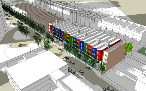 The scheme was broken down into modules to reflect the scale of adjoining residential properties. Colours ensured an appeal to the visitors.